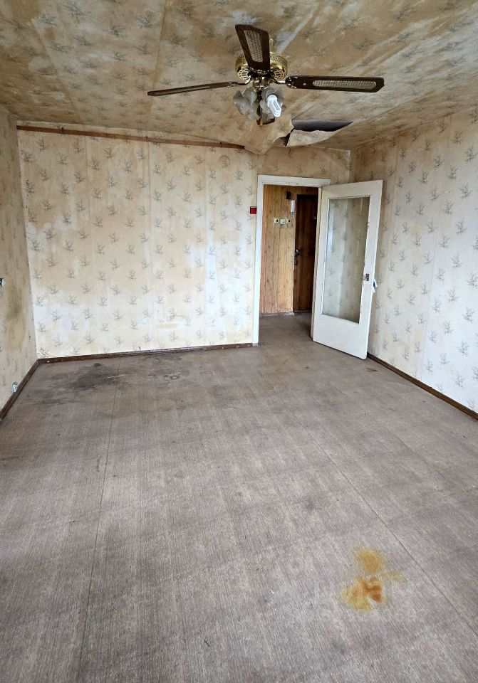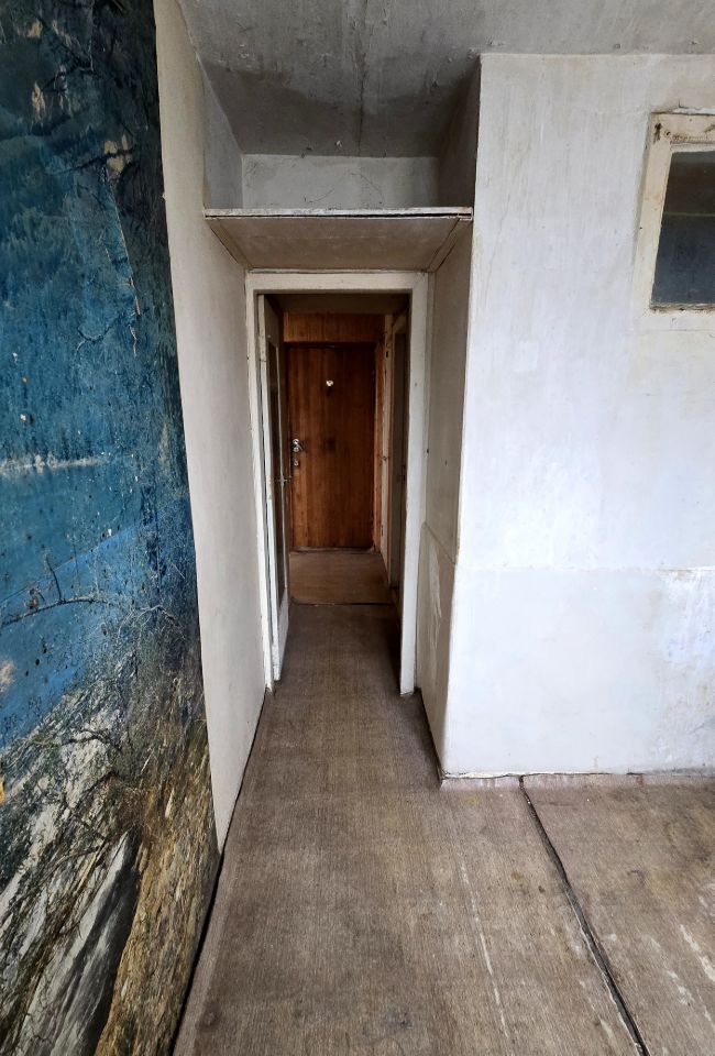 Квартира требует ремонта. Имеется один большой балкон (6 м. в длину), застекленный. Так же есть ниша для хранения.