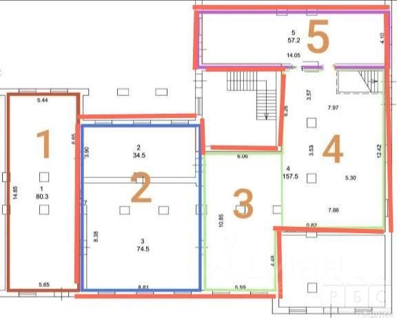 Помещение в аренду для вашего бизнеса, в нежилом здании свободной планировки, 323 кв м. ( на плане помещения со 2-го по 5-ое).