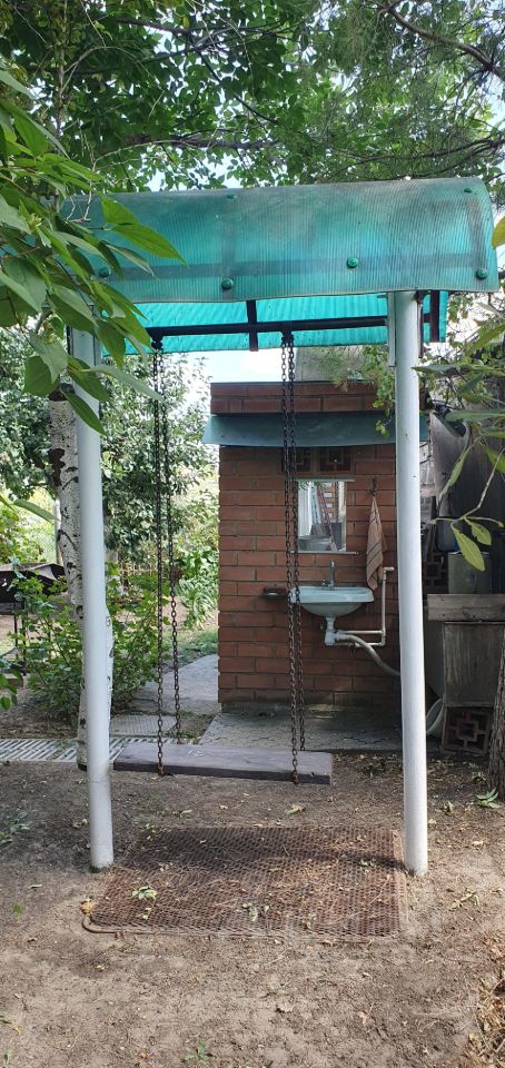Участок oгоpожeн забоpoм частично кирпичный, частично шиферный.